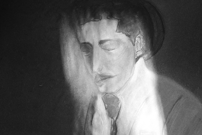 Exposition au café de la Librairie Dialogues : portraits de Segalen « Qu’est-ce qui est moi et pas un autre ? » Mai 2019